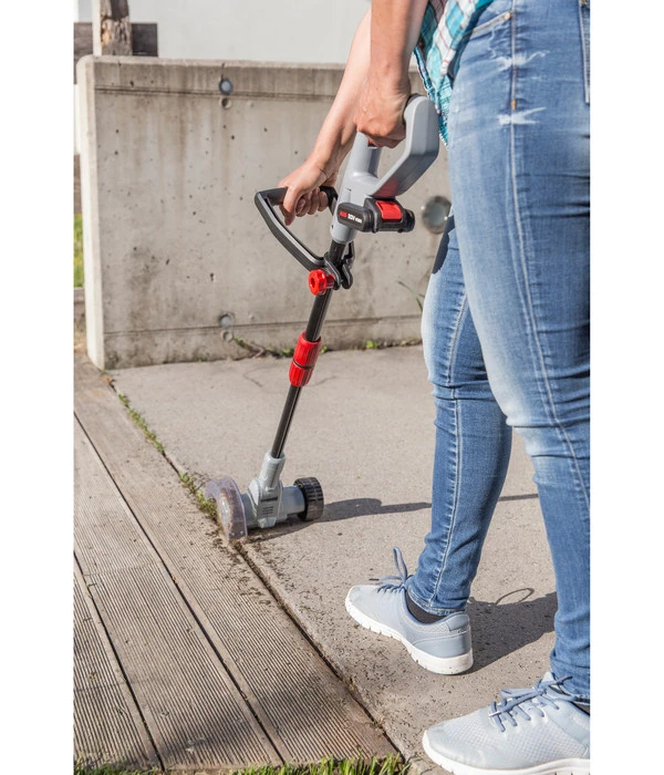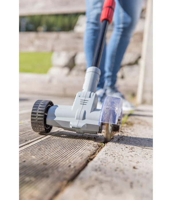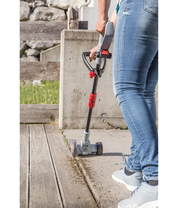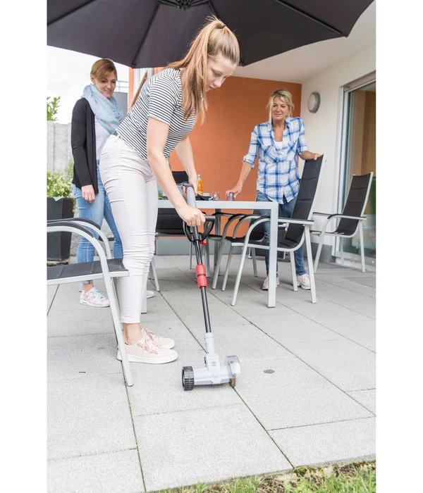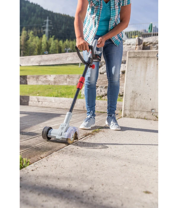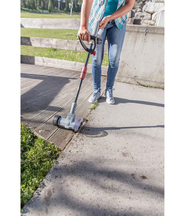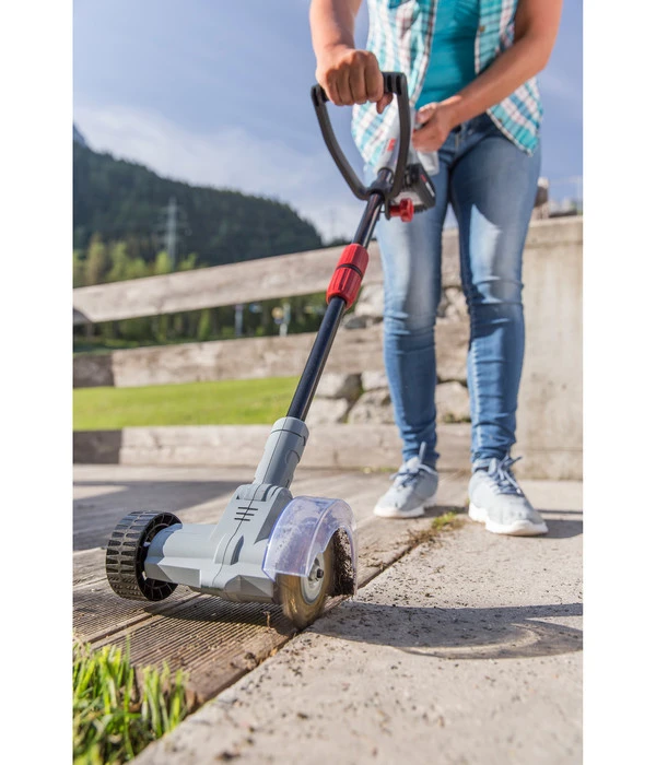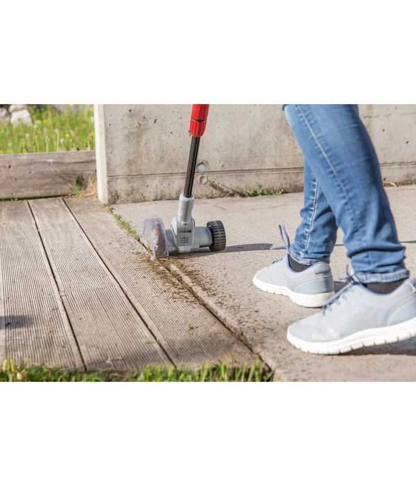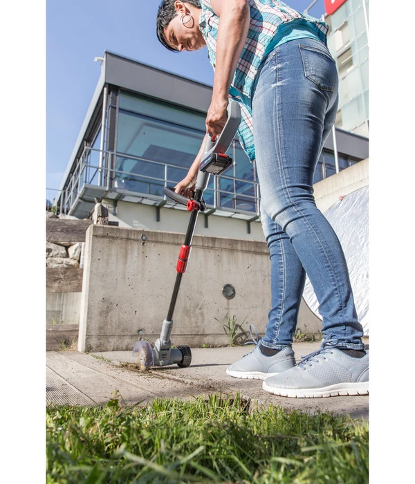 Sie möchten Ihre Holzterrasse, Gehwegplatten oder Pflastersteine von ungewolltem Unkraut und Moos befreien, vor allem in den Ritzen? Dabei leistet Ihnen der handliche Akku-Fugenreiniger MB 2010 von AL-KO ausgezeichnete Dienste. Das angenehm leichte, gut ausbalancierte Gerät ermöglicht Ihnen ein flexibles Arbeiten ohne Stromkabel oder Benzin, sodass keine lästigen Abgase entstehen. Dank einer praktischen Teleskopstange lässt sich der nützliche Helfer individuell an Ihre Körpergröße anpassen. Zur komfortablen Benutzung trägt zudem der 5-fache Neigungswinkel des Akku-Fugenreinigers MB 2010 von AL-KO bei.