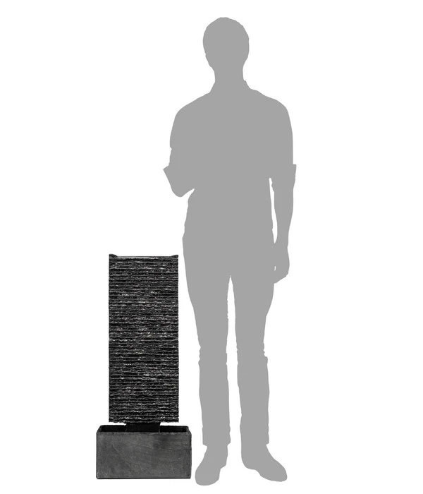 Wer sich mit der asiatischen Feng-Shui-Lehre auskennt, weiß dass dort Wasser eines der wichtigsten Elemente ist, da es die Lebensenergie an einem Ort zusammenführt. Aber auch, wer einfach Freude an exklusiven Design-Objekten in Verbindung mit leisem Wassersäuseln hat, wird von der Ausdruckskraft und Ausstrahlung der Climaqua Naturschiefer-Wasserwand Liv begeistert sein. Denn dieser Brunnen wurde von Hand aus natürlichem Schiefergestein gefertigt, das im Paläozoikum, also vor etwa 200-400 Millionen Jahren entstanden ist. Der obere Teil des Objekts – die Wasserwand – ist von dem Tank leicht abgehoben, was die massive Wand überraschend leicht wirken lässt. Der Wasserfluss läuft glitzern und flächendeckend über die gerillte Oberfläche und tropft dann leise und harmonisch in den Tank. Ein ewiger Kreislauf, der beruhigend und entspannend wirkt. Genießen Sie bald die leise Musik des Wassers und dabei den Blick auf ein Raum-Objekt mit Unikat-Charakter: die Climaqua Naturschiefer-Wasserwand Liv!