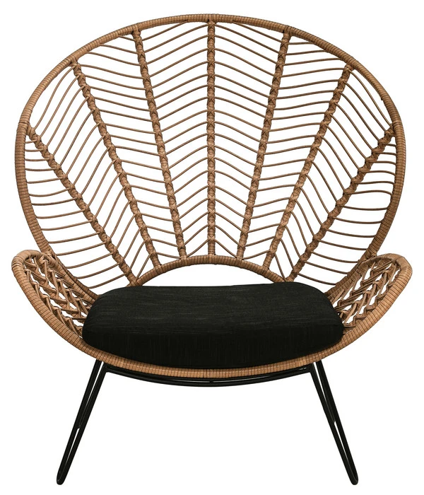 Zu dem naturfarbenen Geflecht und dem schwarzen Stahlgestell wurde beim Dehner Geflechtsessel Venezia noch ein schwarzes Kissen kombiniert. Eine stimmige Farbkombination, die trendy ist und den Sessel zum Hingucker auf der Terrasse oder dem Balkon macht. Wenn Sie dann noch Ihre Palme oder eine andere stattliche Grünpflanze in einem schwarzen Übertopf mit ins Feie nehmen, ist das Boho-Feeling perfekt.