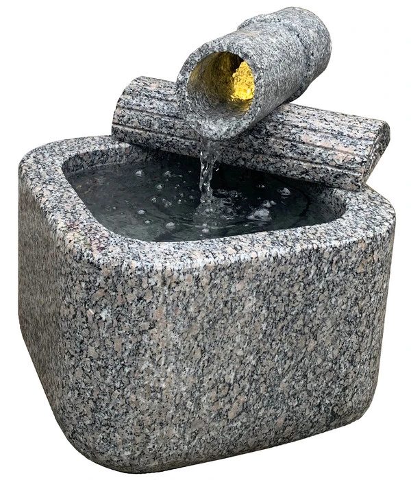 Ihr Dehner Granit-Gartenbrunnen Bambu wird Sie viele Jahre lang erfreuen, wenn Sie einige Tipps beherzigen. Verwenden Sie nur destilliertes oder Regenwasser, um unschöne Ablagerungen zu vermeiden. Vor dem Winter sollten Sie den Wasserbehälter entleeren, um Frostschäden vorzubeugen. Die entkalkte Pumpe überwintert am liebsten in einem Eimer mit Wasser. So können Sie es im Frühjahr wieder losplätschern lassen. Pumpe, Trafo und LED-Beleuchtung sind bereits mit dabei.