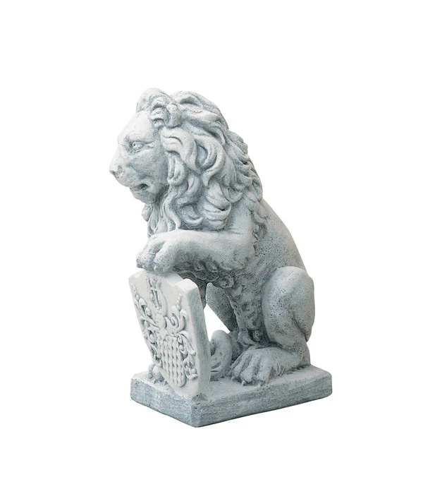 Als Symbol des Mutes, der Kraft und des Stolzes war der Löwe einst das beliebteste Wappentier, später fand er als stilvolle Steinskulptur Einzug vor allem in barocke Parkanlagen. Heute ist es vor allem sein edles Erscheinungsbild, das uns fasziniert. Majestätisch thront der fantasieco Steinlöwe, den Blick in die Ferne gerichtet, das Wappenschild mit einer Pranke beschützt! Mit seinen 66 cm Höhe braucht der fantasieco Steinlöwe keine ausgedehnte Parkanlage, um als krönendes Highlight im Garten die Blicke auf sich zu ziehen. An der Terrasse, in einer lauschigen Ecke, auch im Eingangsbereich macht sich der fantasieco Steinlöwe prächtig und heißt Ihre Gäste auf stilvolle Weise willkommen. Besonders dekorativ wirkt der nach links geneigte fantasieco Steinlöwe aber zusammen mit einem zweiten, nach rechts geneigten Löwen.