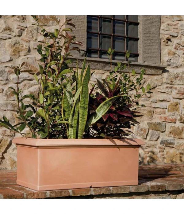 Wenn Sie auf der Suche nach einer effizienten und gleichzeitig hervorragenden Möglichkeit sind, um Ihre Pflanzen stilgerecht in Szene zu setzen, dann stellt dieser glatte, eckige Kunststoff-Kasten eine hervorragende Wahl dar. Mit seinem klassischen Design und einer eleganten Form trägt er erheblich zum Ambiente im Haus oder im Garten bei und versprüht zudem in Kombination mit Ihren Wunschpflanzen ein erstklassiges mediterranes Flair.