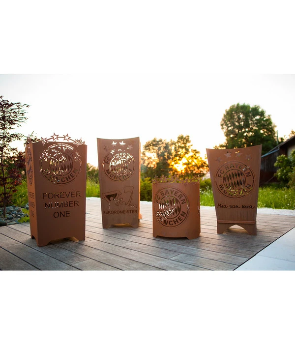 Seit den 60er Jahren reiht der FC Bayern München Sieg an Sieg und ist unangefochtener Rekordmeister im Deutschen Fußball. Für alle Fans, die jetzt auch bei Nacht ihren Stolz auf den Ausnahme-Fußball-Verein demonstrieren möchten, gibt es jetzt diesen tollen FCB Feuerkorb. Bei dieser originellen Feuerstelle handelt es sich um einen der offiziellen FC Bayern Feuerkörbe, die aus stabilem, 2 mm dickem Stahl bestehen und in Bayern hergestellt werden. Der Korb verdankt seine tolle Farbe dem natürlich gerosteten Stahl, welcher die einzigartige Wirkung unterstützt.
