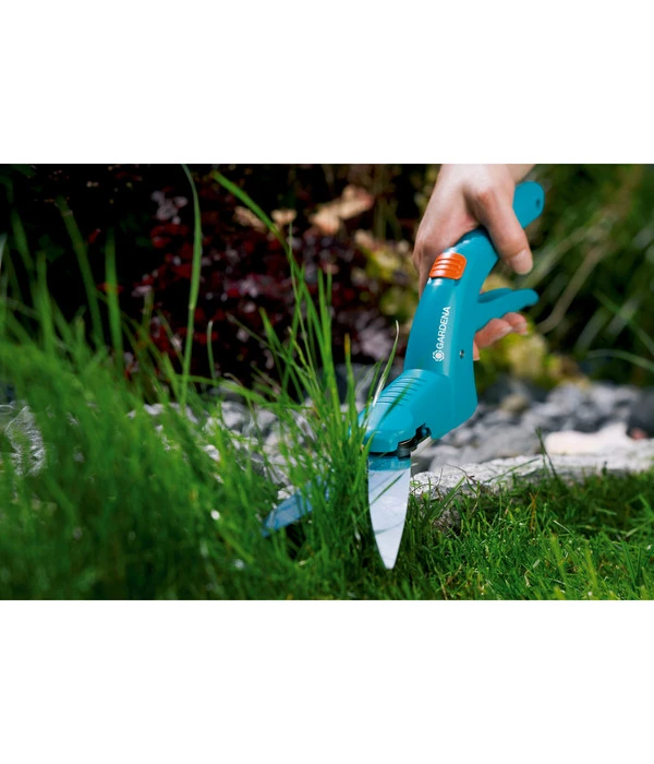 Eine perfekt geschnittene Rasenkante erfreut jeden Gärtner. Mit der GARDENA Classic Grasschere gelingt das Zurückschneiden auch problematischer Stellen. Die Klingen sind gehärtet und glanzverzinkt. Daher schneiden sie nicht nur scharf und präzise, sondern sind zugleich vor Rost geschützt. Die Form der GARDENA Classic Grasschere ist dem Wunsch nach einem ergonomischen Werkzeug geschuldet, das leicht zu bedienen ist. In Kombination mit der besonderen Messerlagerung ermöglicht die Classic Grasschere von GARDENA das ermüdungsfreie Schneiden des Rasens. Die Kraft wird über die gesamte Länge der Klingen weitergegeben. Durch den praktischen Einhandverschluss kann die Grasschere schnell und einfach geschlossen werden.