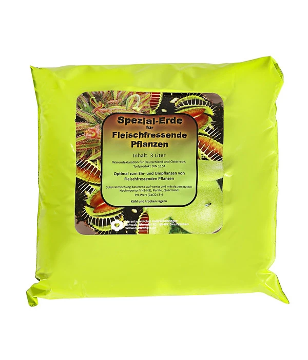 Die meisten Zimmerpflanzen gedeihen gut in normaler Blumenerde. Doch bestimmte Pflanzengruppen stellen Sonderwünsche an ihren Nährboden, sowie die Karnivoren, die sogenannten Fleischfressenden Pflanzen. Für diese Pflanzenart haben wir diese fertige Substratmischung, die den Extrawünschen und Anforderungen der Pflanzen gerecht wird und beste Voraussetzungen bietet.