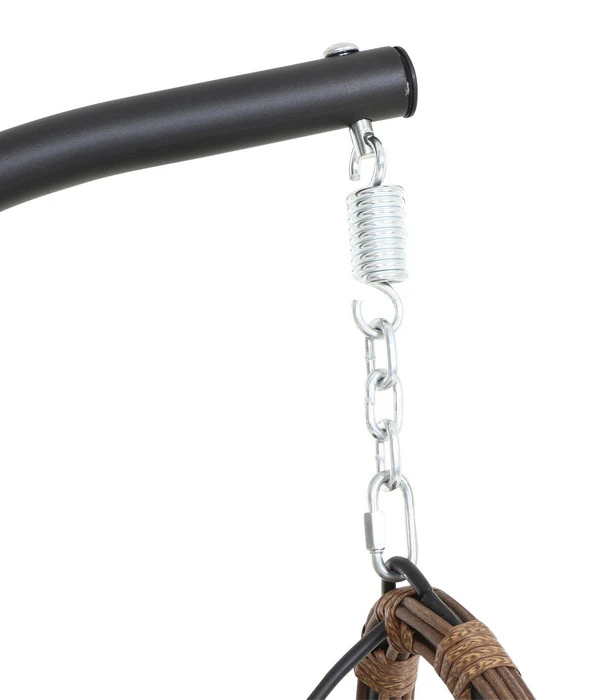 Der Siena Garden Salerno Hängekorb ist ein Kunstwerk aus Gardino®-Geflecht in Royal Oak, das Ihnen stabile Sicherheit bietet und mit seinem lockeren Flechtmuster gleichzeitig für luftige Leichtigkeit sorgt. Das elegant geschwungene Stahlgestell hält sich optisch zurück und sorgt quasi aus dem Hintergrund für den festen Stand. Eine Stahlkette mit Feder verbindet den Korb absolut sicher mit dem Gestell und unterstützt dabei das Schwebegefühl. Die zusätzliche Sicherheitsleine wiederum sorgt dafür, dass Sie es beim Schaukeln nicht übertreiben können.