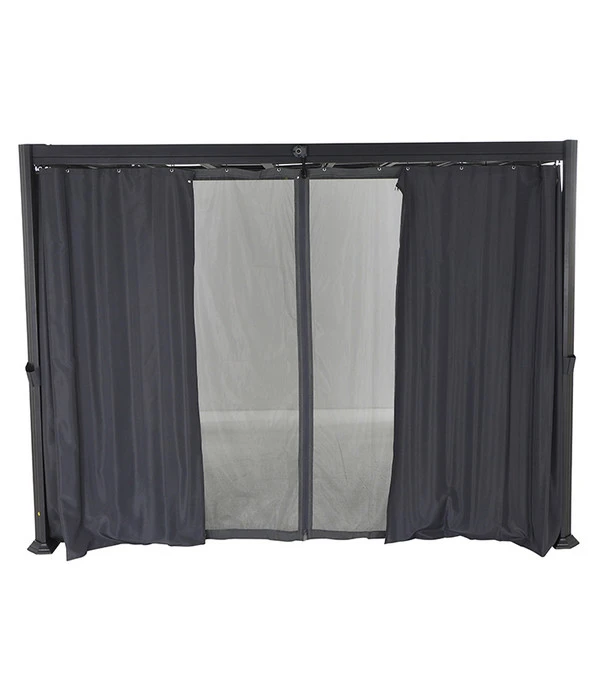 Sie beisitzen bereits Seitenteile an Ihrem Pavillon Florenz oder möchten die Ausgedienten ersetzen? Mit diesem Set aus vier passenden Teilen schaffen Sie sich mehr privaten Bereich in Ihrem Garten. Die Wände bestehen aus pflegeleichtem Polyester und sind dadurch sehr robust und witterungsbeständig. Durch Ösen mit Hacken an den Seitenteilen sind diese auch im Nu an Ihrem Pavillon befestigt. Zum Öffnen können die Wände dekorativ um die Pfosten gebunden werden. Alternativ besitzt jede Seite einen Reißverschluss, der Sie schnell ins Innere gelangen lässt. Freuen Sie sich auf ausgelassene Abende unter Ihrem Pavillon Florenz.