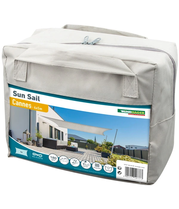 Mit dem Windhager Sonnensegel Cannes ist es einfach, einen herrlichen schattigen Platz auf dem großen Südbalkon oder der Terrasse zu schaffen, um die ganze Familie oder den Kreis Ihrer Gäste vor der gefährlichen UV-Strahlung unserer Sonne zu beschützen. Durch das rechteckige Format wird der zu beschattende Bereich hervorragend bedeckt und ermöglicht eine optimale Nutzung. Dank seines UV-Schutzes können Sie das schöne Sommerwetter völlig entspannt genießen. Zudem ist das Sonnensegel Cannes von Windhager wasser- und windfest und verträgt bei entsprechend geneigter Anbringung einen Schauer oder hält einem Sommerwindstoß stand, ohne einzureißen.