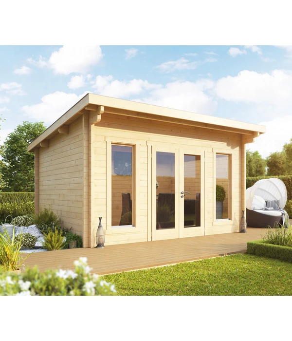 Sie lieben es, in den Sommermonaten viel Zeit im Garten zu verbringen, draußen zu essen, mit den Kindern zu spielen, zu lesen oder einem Hobby nachzugehen? Dann sollten Sie Ihre Gartenanlage mit dem Wolff Finnhaus Gartenhaus Trondheim 44-D krönen. Denn dann werden Sie die Sommertage und -abende noch mehr genießen. Im Liegestuhl vor dem schönen Holzhaus oder, wenn ein kühler Wind weht oder es zu regnen droht, im Inneren des Holzhauses, das Sie jedes Mal mit seiner unnachahmlich gemütlichen Atmosphäre empfängt, wie sie typisch für die Holzhäuser im hohen Norden ist. Wie seine Vorbilder ist auch das Wolff Finnhaus Gartenhaus Trondheim 44-D in klassischer Blockbohlenbauweise konstruiert, unterscheidet sich aber von vielen anderen Gartenhäusern durch seine moderne Architektur mit dem Pultdach und den vielen hohen Fenstern. Genießen Sie bald entspanntes Urlaubs-Flair – mit Ihrem neuen Holzhaus!