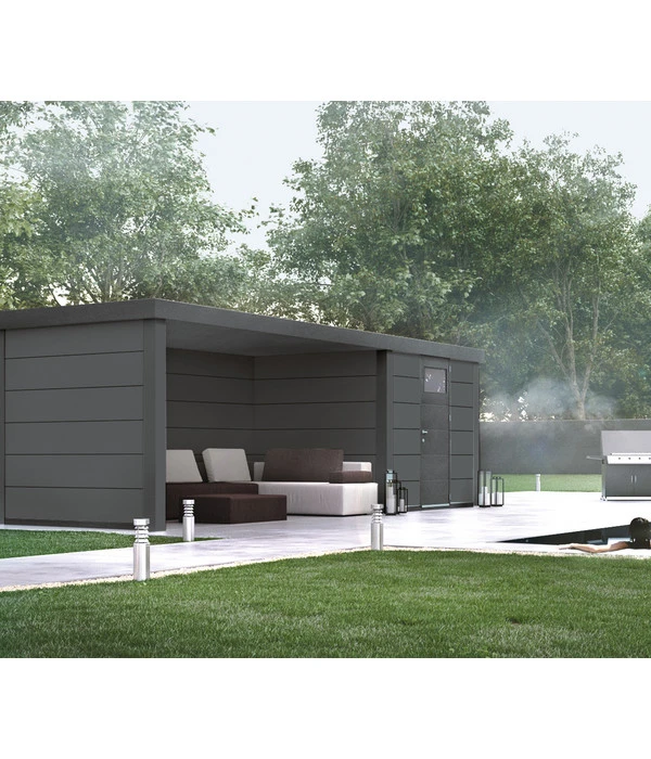 Mit einem Wolff Finnhaus Metallgerätehaus Eleganto 2424 inklusive Lounge links erfüllen Sie sich gleich mehrere Wünsche. Denn, während Ihre Gartengeräte sicher und ordentlich im Gerätehaus untergebracht werden, können Sie im Lounge-Bereich entspannen. Und das Beste: Das Gerätehaus präsentiert sich in einem schlicht-geradlinigen, modernen Design, was durch die edel lackierten Oberflächen und die Rillenstruktur noch unterstützt wird. Ein traumhaft schöner Anblick!